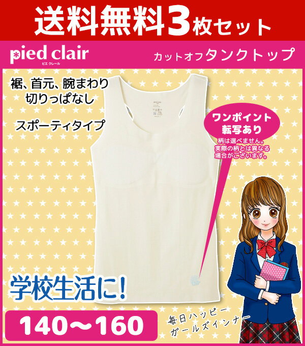 送料無料3枚セット ジュニアレディース pied clair ピエクレール カットオフ タンクトップ パッド入り 140cm 150cm 160cm グンゼ GUNZE 日本製|タンク キッズ ジュニア ガールズ インナー 女の子 肌着 インナーウェア セット まとめ買い 女児 ティーン ティーンズ 下着