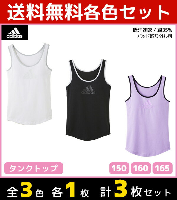 3色1枚ずつ 送料無料3枚セット ジュニアレディース adidas アディダス タンクトップ パッド入り グンゼ GUNZE 子供下着 | タンク キッズ ジュニア ガールズ ガールズインナー インナー 女の子 女児 肌着 スクール スポーツ インナーウェア スポーツブランド 学校 体育