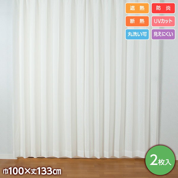 レースカーテン 100×248cm丈 2枚組 遮光 断熱 UVカットウォッシャブル 保温 遮像 国産 日本製 エアロカプセル ホワイト(代引不可)【送料無料】